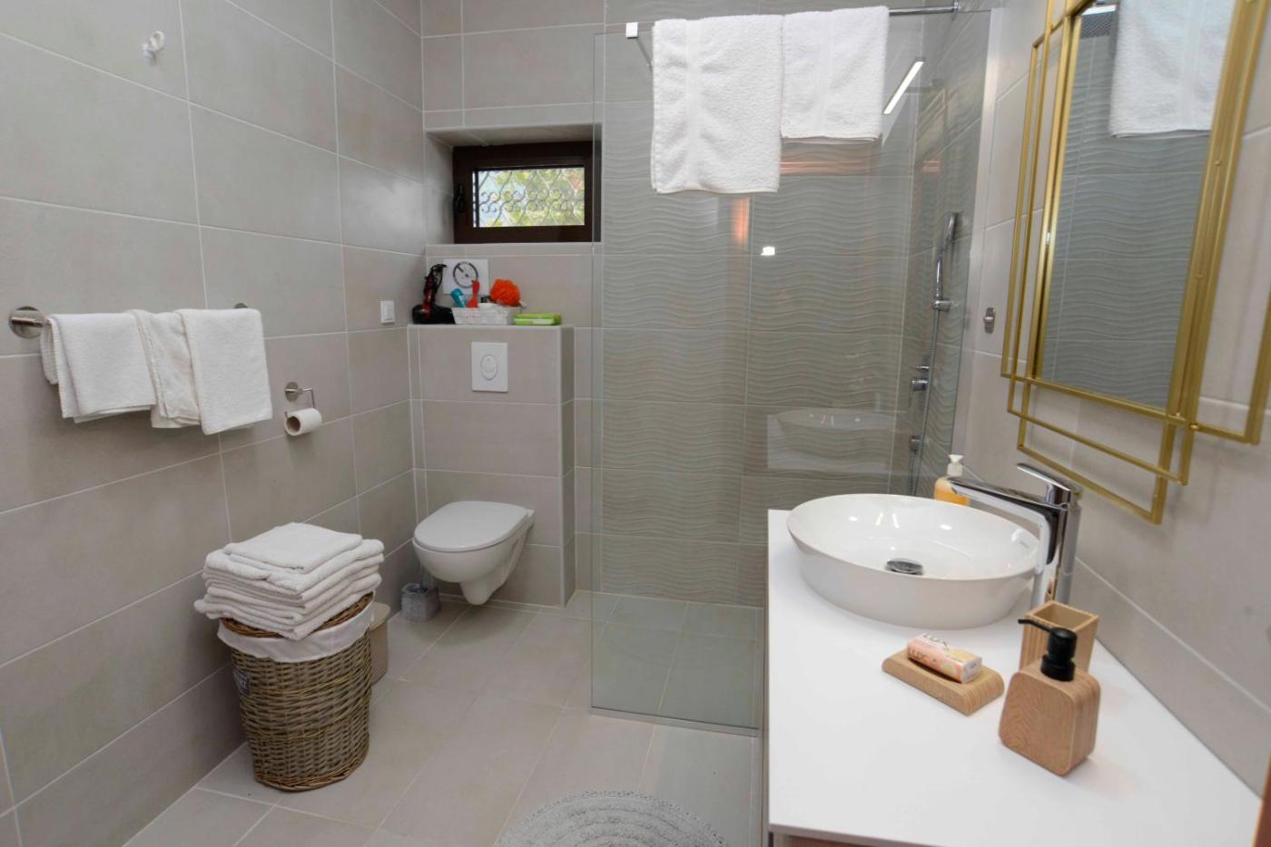 Three-Bedroom Apartment. Boasting a private entrance, this spacious apartment also features 3 bedrooms, a seating area and 1 bathroom with a walk-in shower and a hairdryer. Guests will find a stovetop, a refrigerator, a dishwasher and kitchenware in the kitchen. The apartment also comes with a barbecue. The air-conditioned apartment features a flat-screen TV with streaming services, a washing machine, a coffee machine, a wardrobe as well as sea views. The unit has 3 beds. ;