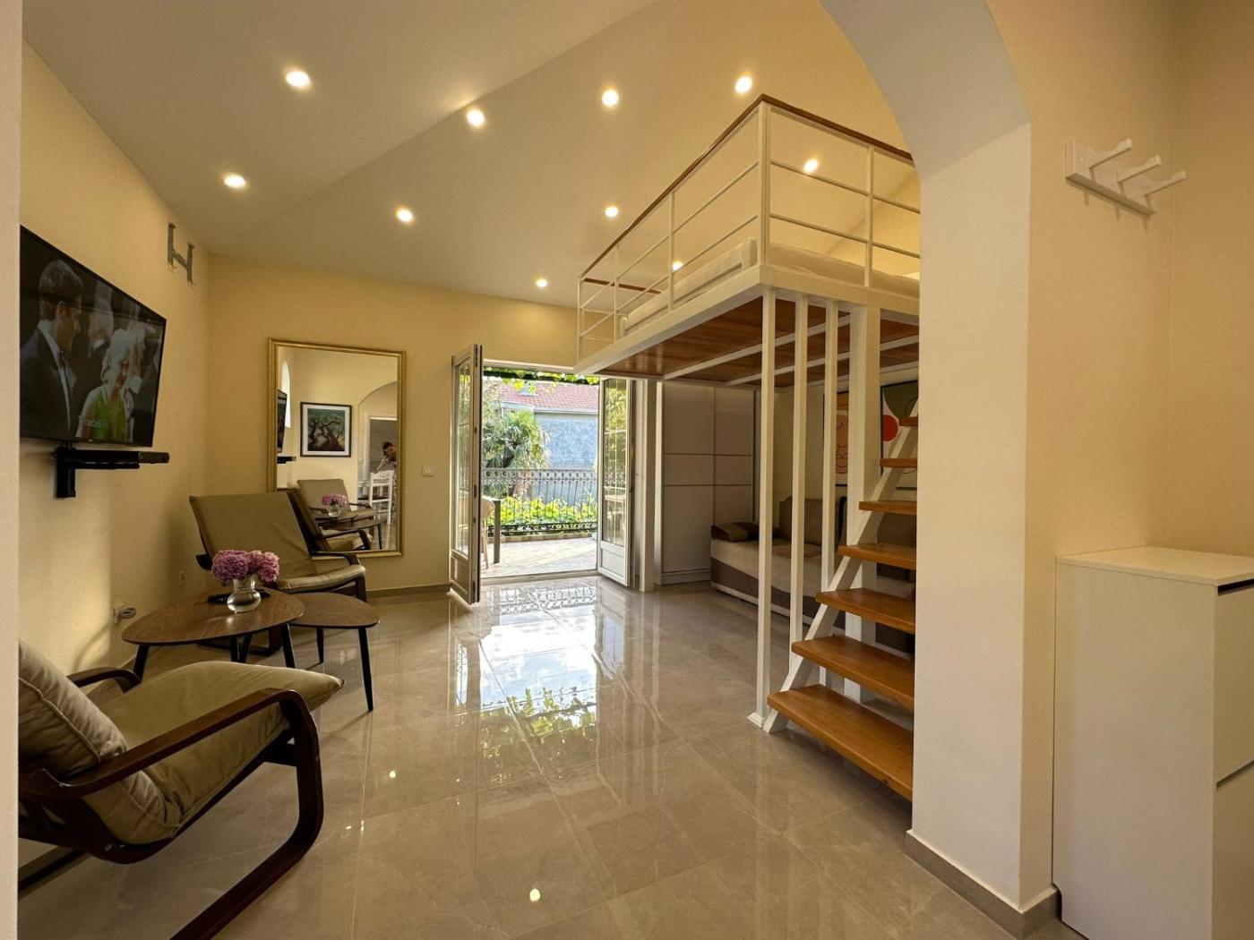 Located within 1.5 km of Lalovina Beach and 7.2 km of Herceg Novi Clock Tower in Herceg-Novi, SunÄana Kula offers accommodation with seating area. The property features garden and quiet street views, and is 7.7 km from Forte Mare Fortress. The apartment provides rooms with air conditioning, free private parking and free WiFi.